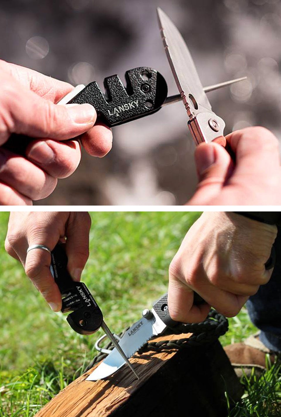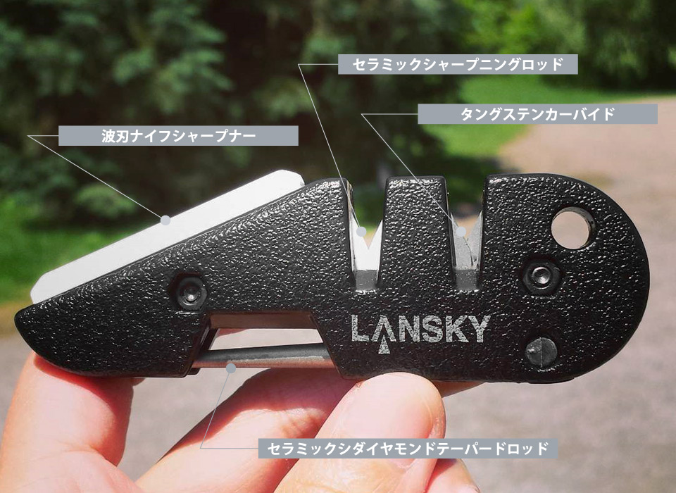 - 4種類の砥石を備えたポケットシャープナーです。 様々な刃物に対応するよう設計されており、さらにコンパクトに持ち運べることから野外でのナイフメンテナンスにうってつけのアイテムとなっています。