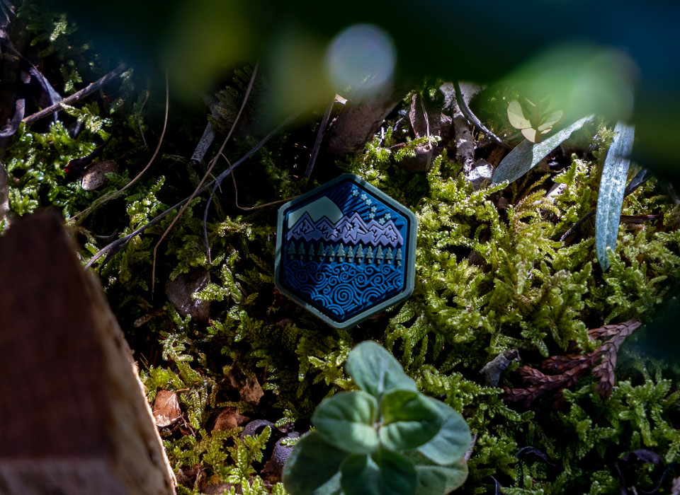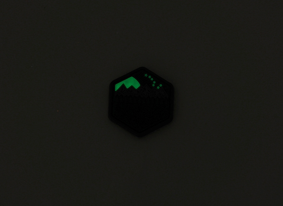 - PDWブランドの代表的なオリジナルグラフィック「All Terrain」をモチーフにしたPVC製ミニモラールパッチです。このグラフィックは海や森、山などすべての地形を表現しています。今作は夜の時間帯を切り取ったデザインとなっており、月夜に照らされたフィールドをイメージしています。星と月の部分のみ蓄光素材で出来ており、光を蓄えて暗闇でぼんやりと発光します。