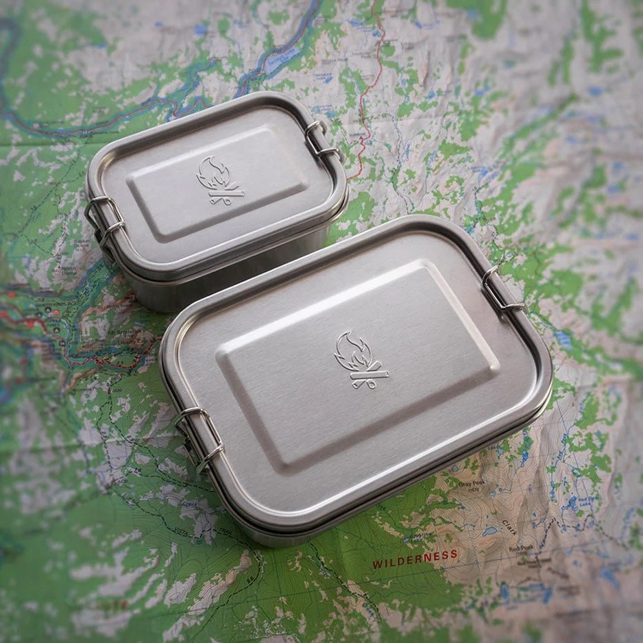 「Camp Stash Box 800ML」は、ステンレススチールを使用した堅牢なコンテナです。約800mlの容量があり、内部には可動式の仕切りを備えているため、用途に応じて中身を整理して収納することができます。二つのラッチでしっかり固定できるフタにはシリコーン製ガスケットが装着されており、高い密閉性で内部をしっかり保護します。水や汚れに強く、アウトドアシーンでの小物整理やアクセサリーの収納ケースとして活躍するアイテムです。