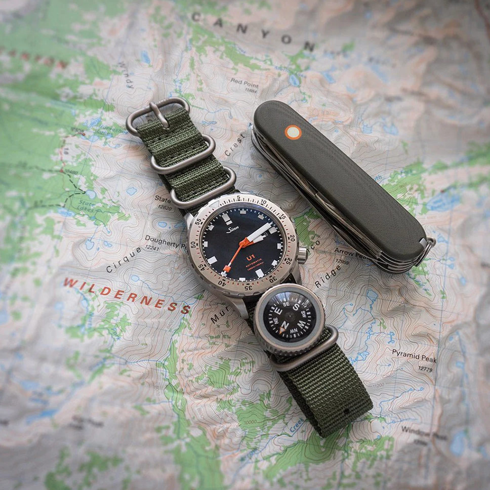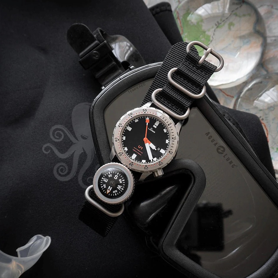 ストラップの2重構造はクラシックなNATOストラップに由来するもので、時計本体がストラップからすり抜けにくく、外した状態でも安定して保持できる設計です。こうした工夫により、高い耐久性と信頼性を実現しています。