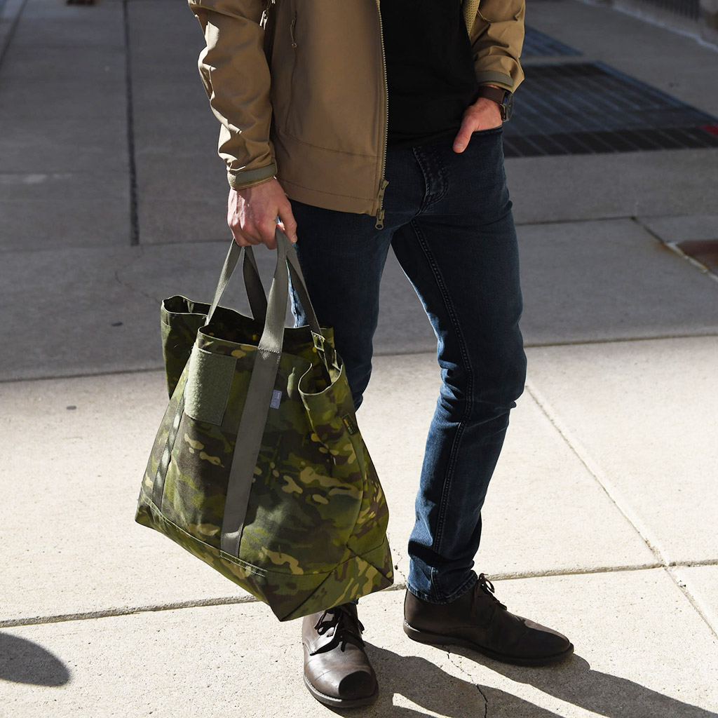 シンプルなトートバッグのフォルムながら、細部のディテールまでOTTE Gearらしいコダワリが息づいています。ブランドはこのトートバッグを、「アラスカのハンティングからエベレスト登頂にさえ耐えうる」というコンセプトのもとにデザインしたという。もちろん実際にそれらの場面で使用することはないとしても、その比喩が示す通り、過酷な環境でも安心して使える堅牢さを備えた逸品です。